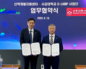 [더바카라 꽁 머니 유수인 기자] 케이메디허브(대구경북첨단의료산업진흥재단) 신약개발지원센터는 서강대 G-LAMP 사업단과 전략적 신약 개발 협력을 위한 업무협약(MOU)를 체결했다고 15일 밝혔다.신약개발지원센터 대회의실에서 진행된 이번 협약식에는 안경규 신약개발지원센터장 외 부장·팀장급 실무진과 이덕형 서강대 G-LAMP 사업단 외 6명의 교수들이 참석했다.양 기관은 협약식에서 항암·대사질환 관련 신약 개발 공동 연구 협력 체계 구축과 혁신 기반 기술 플랫폼 구축 방안을 논의했다. 신약개발지원센터는 사업단의 연구 성과와 기술이 혁신신약 개